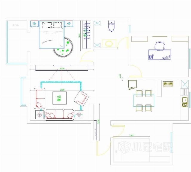 簡練的線條中添加了生動的顏色,空間豐厚時髦。