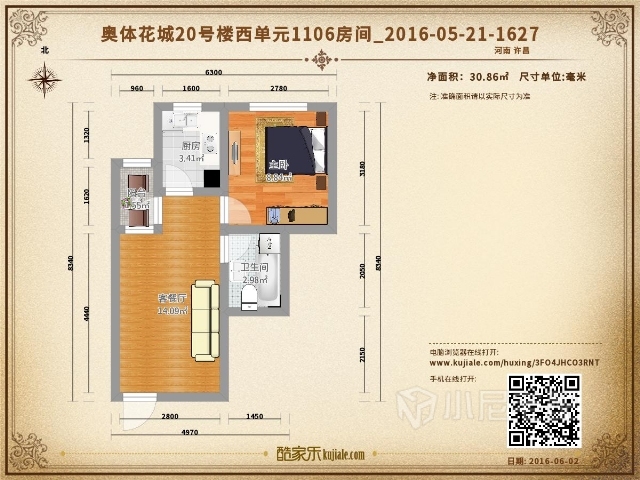 奧體花城20號樓西單元1106
