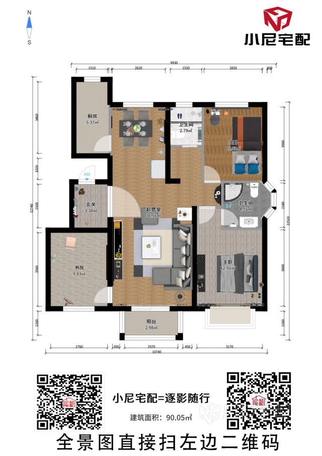 次臥辦公,休息,收納于一室,讓每一寸空間物盡其用。單區(qū)間的圍合空間,采用立體式環(huán)抱包圍,在風(fēng)水上叫藏風(fēng)聚氣