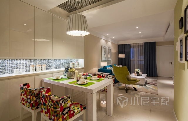 餐廳充滿了創(chuàng)意元素,不管是這色彩絢麗的椅子還是頭頂?shù)牡鯚?,設(shè)計(jì)感十足。